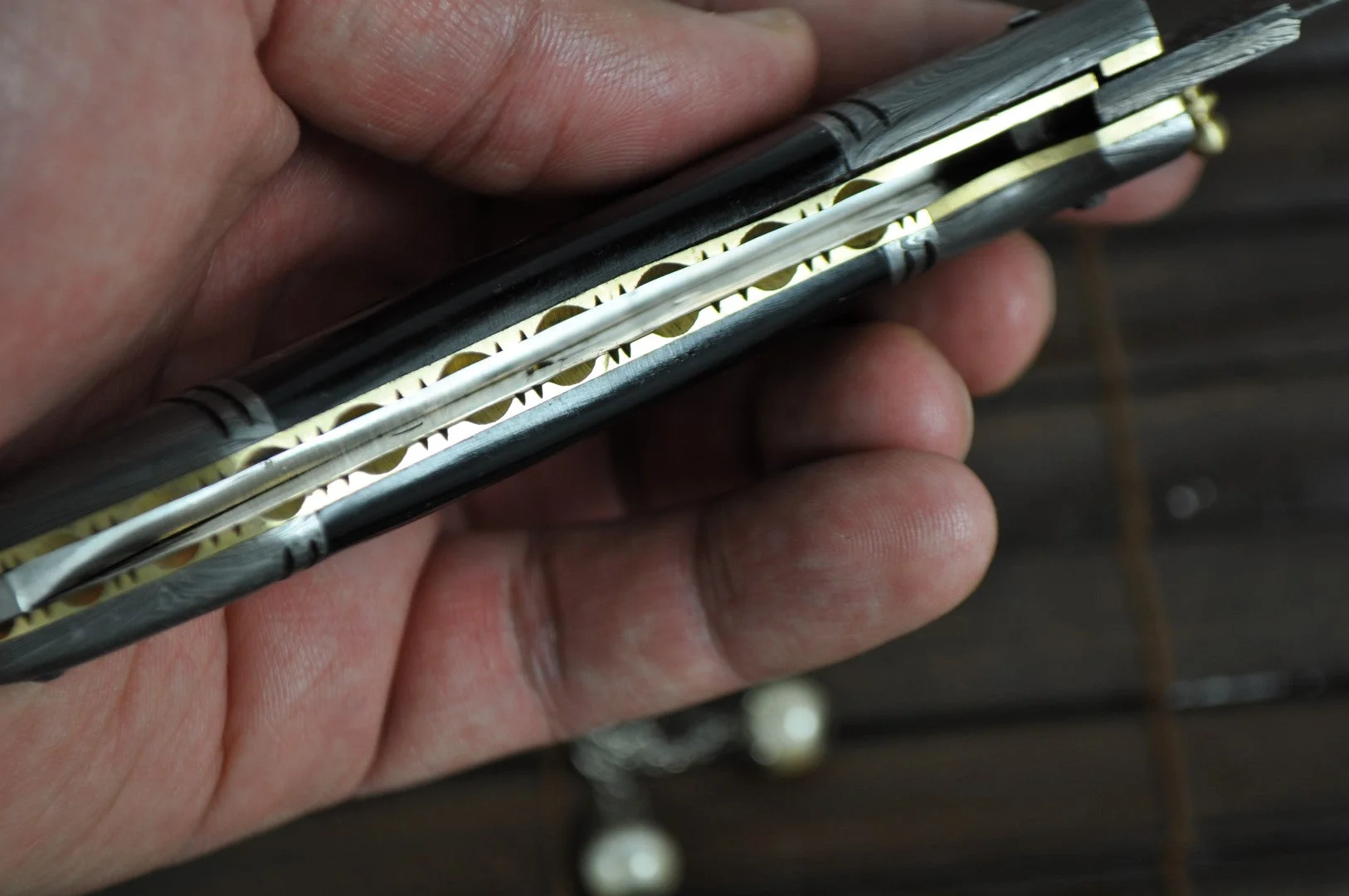- Genuine Damascus steel blade, Buffalo horn Handle
