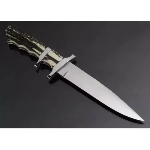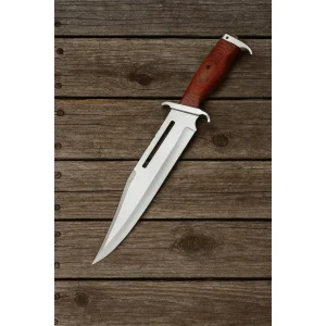 - Blade shape: recurved w/zigzag serrated spine; Blade length: 9-1/2”, thickness: 3 mm